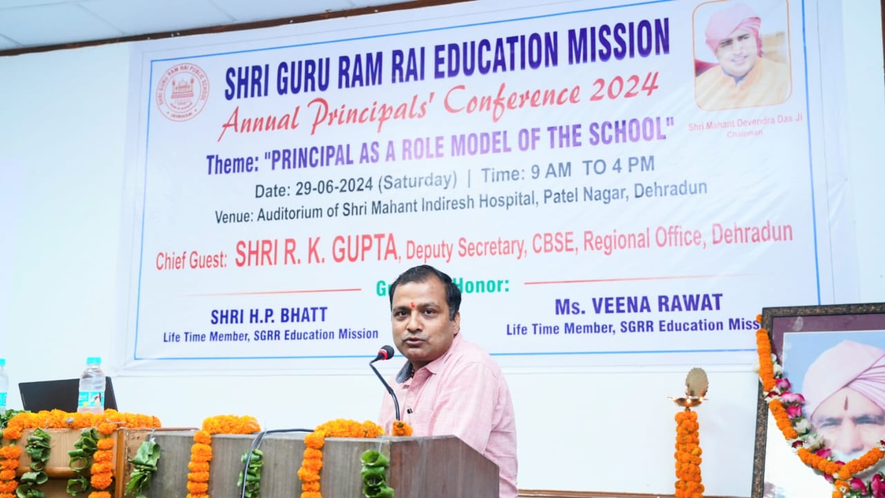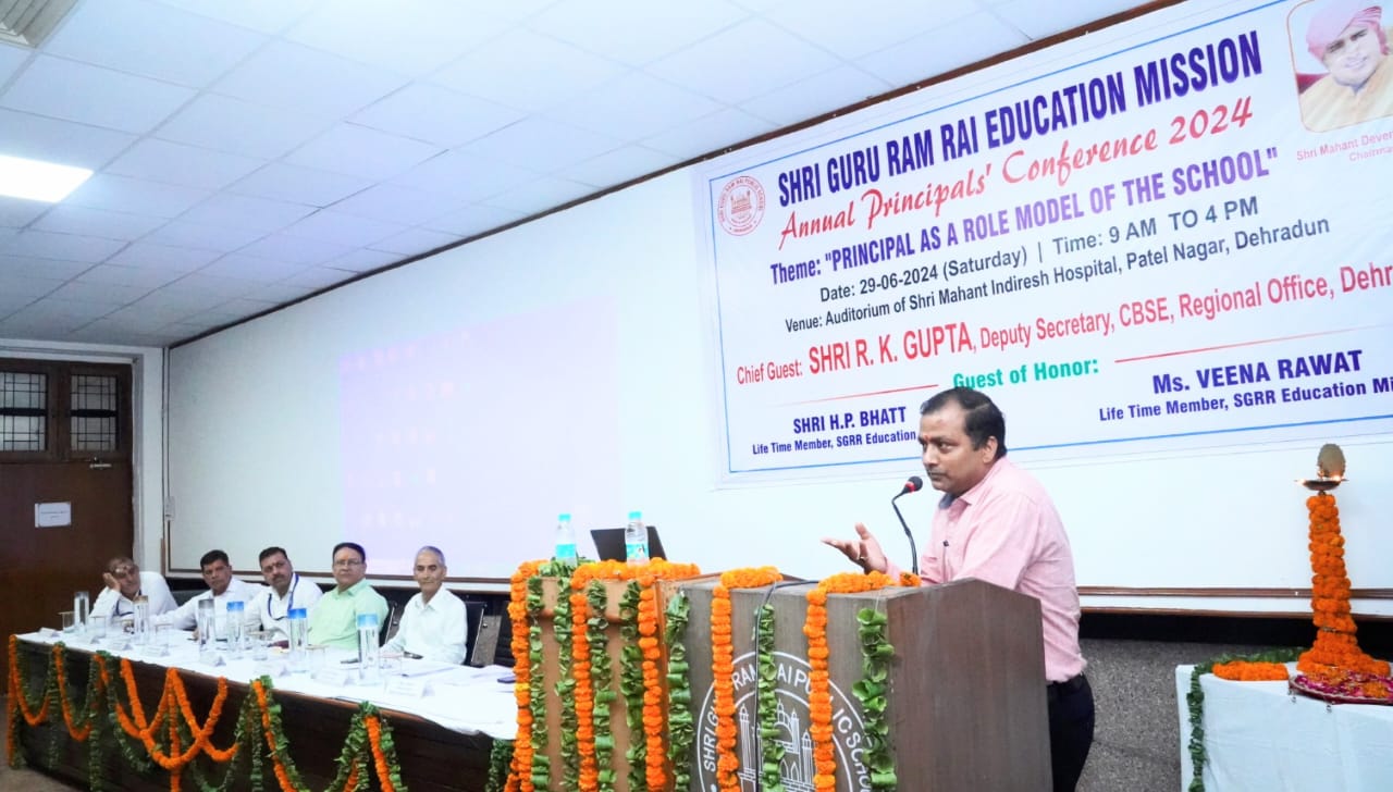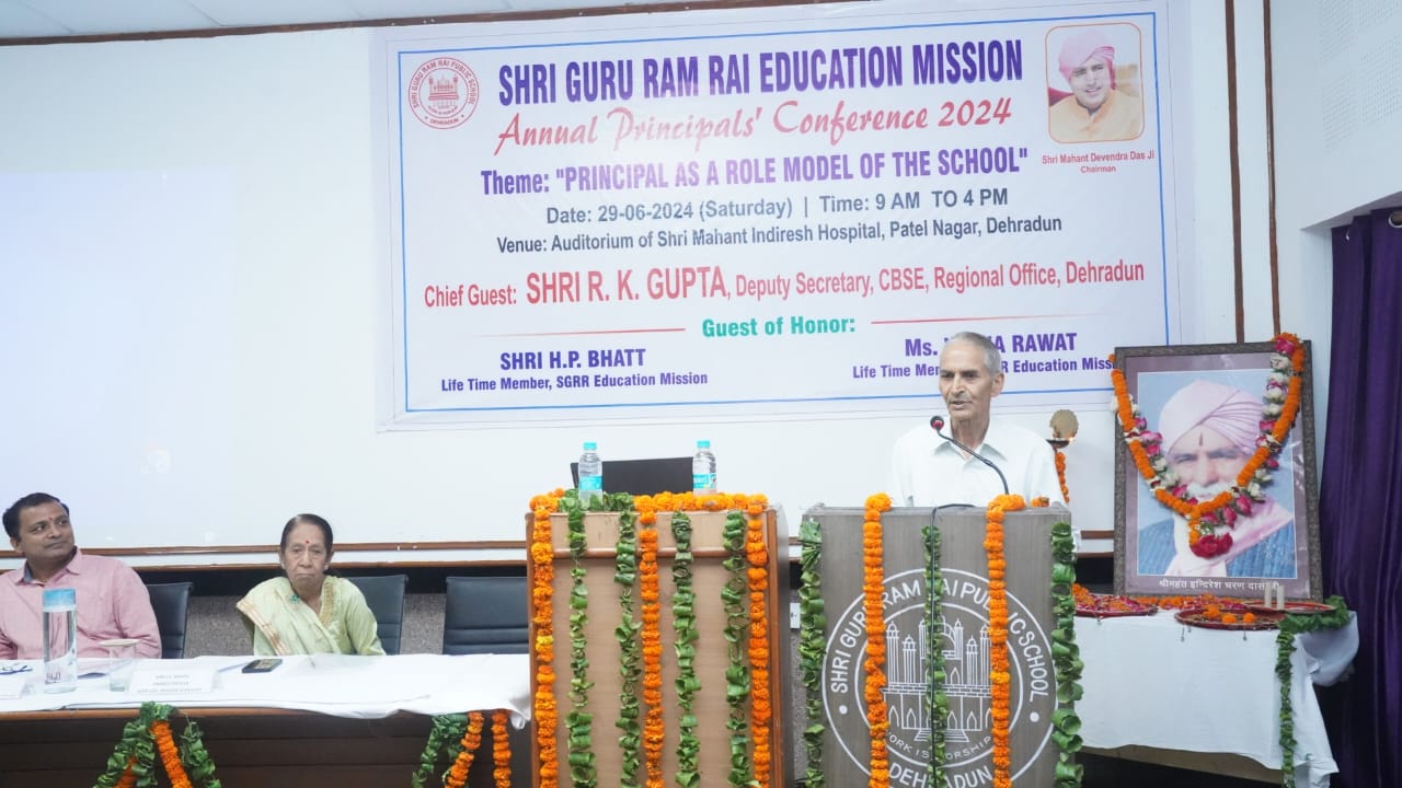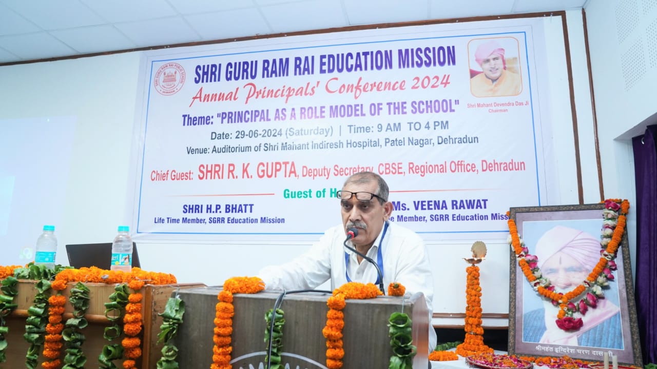मुख्य अतिथि आर.के.गुप्ता ने कहा कि श्री गुरु राम राय एजुकेशन मिशन के संस्थान गुणवत्तापरक शिक्षा को आम आदमी की पहुंच के अंदर प्रदान कर रहे हैं, यह मिशन का बेहद सराहनीय प्रयास है। उन्होंने सीबीएसई 10वीं एवं 12वीं के परीक्षा परिणामों में एसजीआरआर स्कूली के मेधावी छात्र-छात्राओं के प्रदर्शन को प्रशंसनीय बताया। उन्होंने सभी प्रधानाचार्यों का आह्वाहन किया कि वे सीएबीएसई की वेबसाइट का अध्ययन कर नवीन जानकारियों से अपडेट रहें। एसजीआरआर एजुकेशन मिशन के आजीवन सदस्य एच.पी.भट्ट ने कहा एसजीआरआर एजुकेशन मिशन के अन्तर्गत संचालित स्कूलों का माॅडल प्रधानाचार्यों के अनुकूल है। प्रधानाचार्य एक कुशल प्रशासक की तरह अपने सकारात्मक विचारों व निर्णयों को कियान्वित करवाकर स्कूल व छात्र हितों में निर्णय ले सकता है।