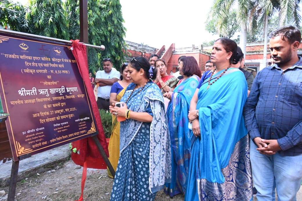 कोटद्वार : विधानसभा अध्यक्ष ऋतु खण्डूडी भूषण ने बद्रीनाथ कोटद्वार मार्ग स्थित पीएम श्री राजकीय बालिका इंटर कॉलेज में ₹08.55 लाख की लागत से बने मंच के ऊपर टीन शेड एवं फर्श निर्माण कार्य का लोकार्पण किया । लोकार्पण कार्यक्रम में पहुंचकर अध्यक्ष ऋतु खण्डूडी ने दीप प्रज्वलित कर कार्यक्रम का शुभारंभ किया।