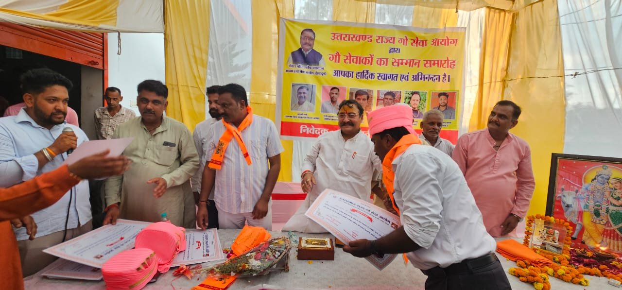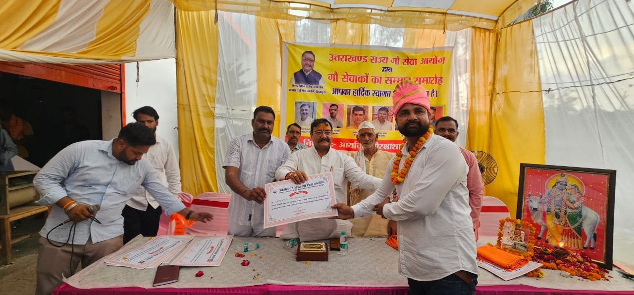 अध्यक्ष राज्य गो सेवा आयोग उत्तराखंड डॉ. पंडित राजेन्द्र अंथवाल ने आर्यावर्त गौ रक्षा शाला ट्रस्ट में आयोजित कार्यक्रम में गोसेवकों को किया सम्मानित