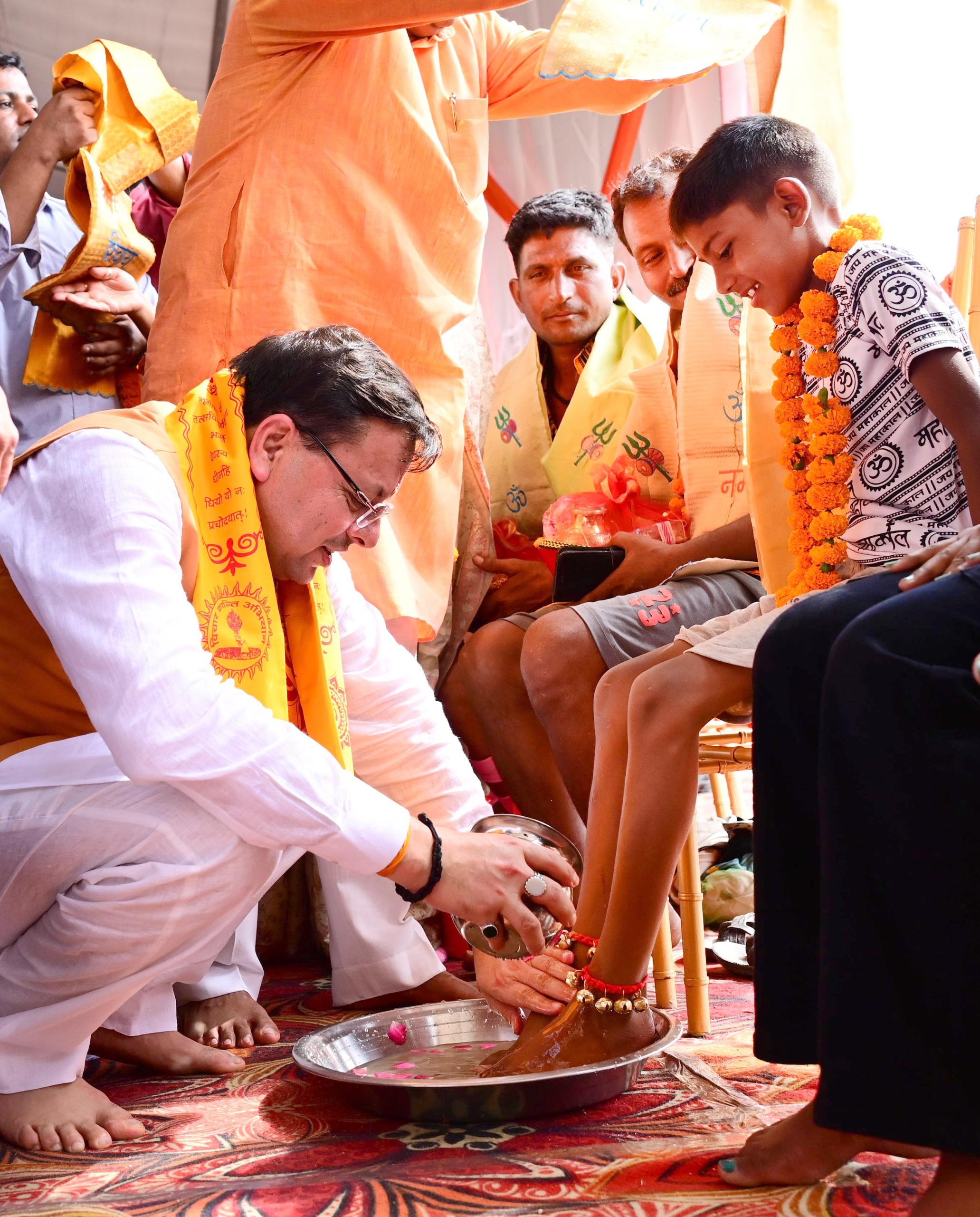 हरिद्वार : मुख्यमंत्री पुष्कर सिंह धामी ने मंगलवार को ओम पुल घाट निकट डामकोठी, हरिद्वार में विभिन्न प्रदेशों से आये शिवभक्त कावड़ियों के चरण धोने के साथ माल्यार्पण, शॉल तथा गंगाजली भेंट कर उनका स्वागत किया। उन्होंने देश के विभिन्न राज्यों से उत्तराखंड आए कावड़ियों का स्वागत करते हुए कहा कि हरिद्वार पूरे देश की श्रद्धा का केंद्र है। इस पवित्र स्थल पर मां गंगा एवं भगवान भोलेनाथ का विशेष आशीर्वाद है। श्रावण मास में कावड़ यात्रा का विशेष महत्व है। राज्य सरकार को कावड़ियों का स्वागत करने का सौभाग्य मिला है। कावड़ यात्रा को सुगम सुरक्षित बनाकर सरकार इस यात्रा में कावड़ियों का सहयोगी बनकर कार्य कर रही है। कावड़ियों की सेवा करना सभी के लिए पुण्य का काम है। उन्होंने पुष्प वर्षा से कांवडियों के स्वागत को देवभूमि की अतिथि देवो भवः की परम्परा बतायी।