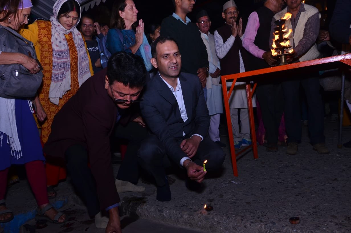 बागेश्वर : नमामि गंगे परियोजना के तहत सोमवार देर शाम सरयू, गोमती पावन नदी के संगम बागनाथ मंदिर घाट पर दीपोत्सव कार्यक्रम आयोजित हुआ। डीएम आशीष भटगांई ने दीप महोत्सव कार्यक्रम का दीप प्रज्ज्वलित कर शुभारंभ किया, उसके बाद गंगा आरती हुई। सरयू नदी के किनारे सैकड़ों दीप प्रज्वलित किए गए। इस दौरान जिलाधिकारी ने उपस्थित लोगों को गंगा की सहायक नदियों की स्वच्छता और निर्मलता की शपथ दिलायी। कार्यक्रम में जिला पंचायत अध्यक्ष बसन्ती देव, जिलाध्यक्ष भाजपा इंद्र सिंह फर्स्वाण, ब्लॉक प्रमुख बागेश्वर पुष्पा देवी, दलीप सिंह खेतवाल, इंद्र सिंह परिहार, पूर्व चेयरमैन रेडक्रॉस संजय शाह जगाती, वृक्ष प्रेमी किशन सिंह मलड़ा, एसपी चंद्रशेखर घोडके, डीएफओ धुव्र सिंह मर्तोलिया, एसडीएम मोनिका, सीएमओ कुमार आदित्य तिवारी, जिला पर्यटन अधिकारी पीके गौतम सहित अन्य अधिकारियों, कर्मचारियों और श्रद्धालुओं द्वारा भी प्रतिभाग किया गया। सभी ने दीप प्रज्वलित कर गंगा आरती में शामिल हुए तथा पुण्य के भागीदार बने।