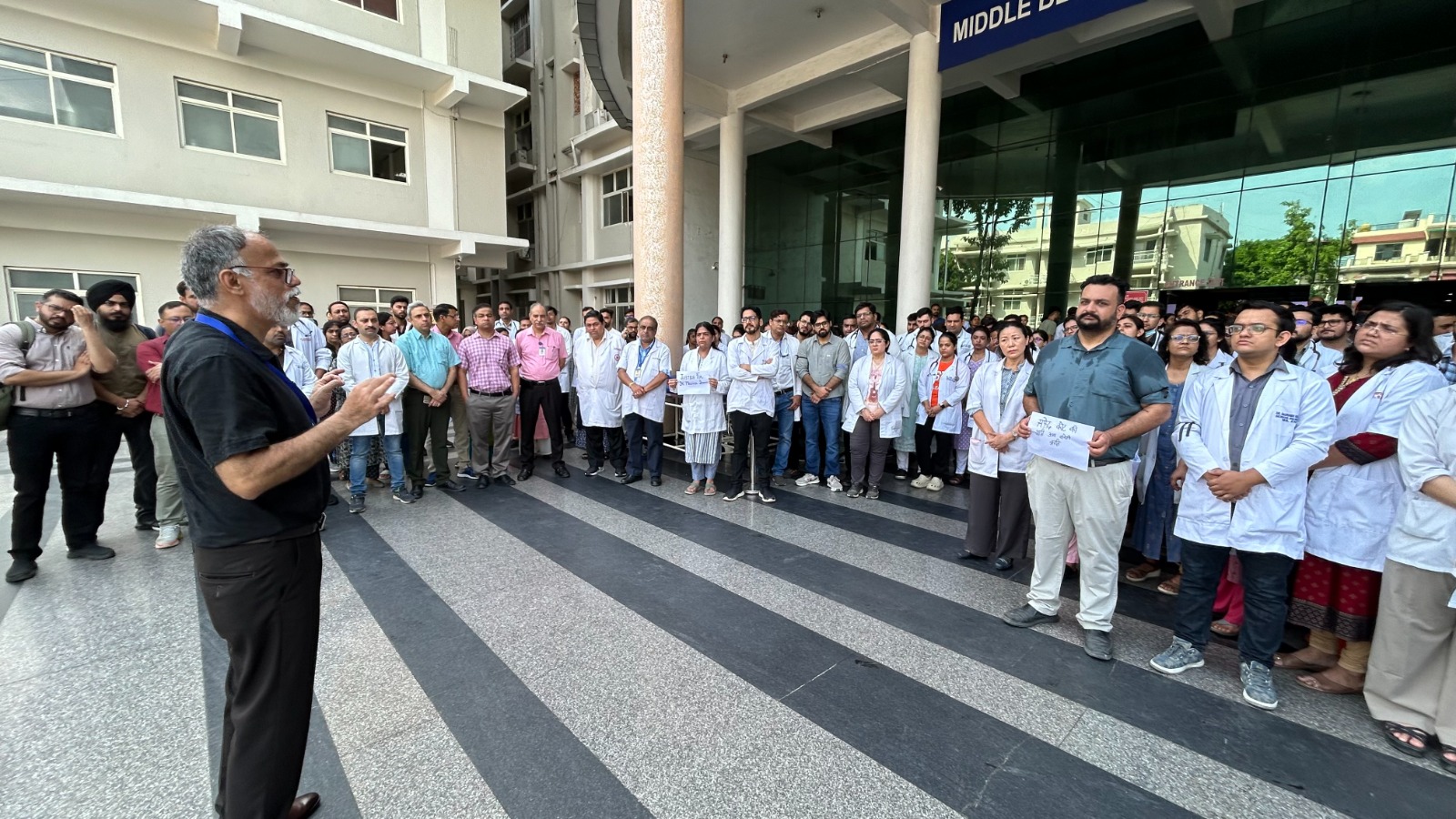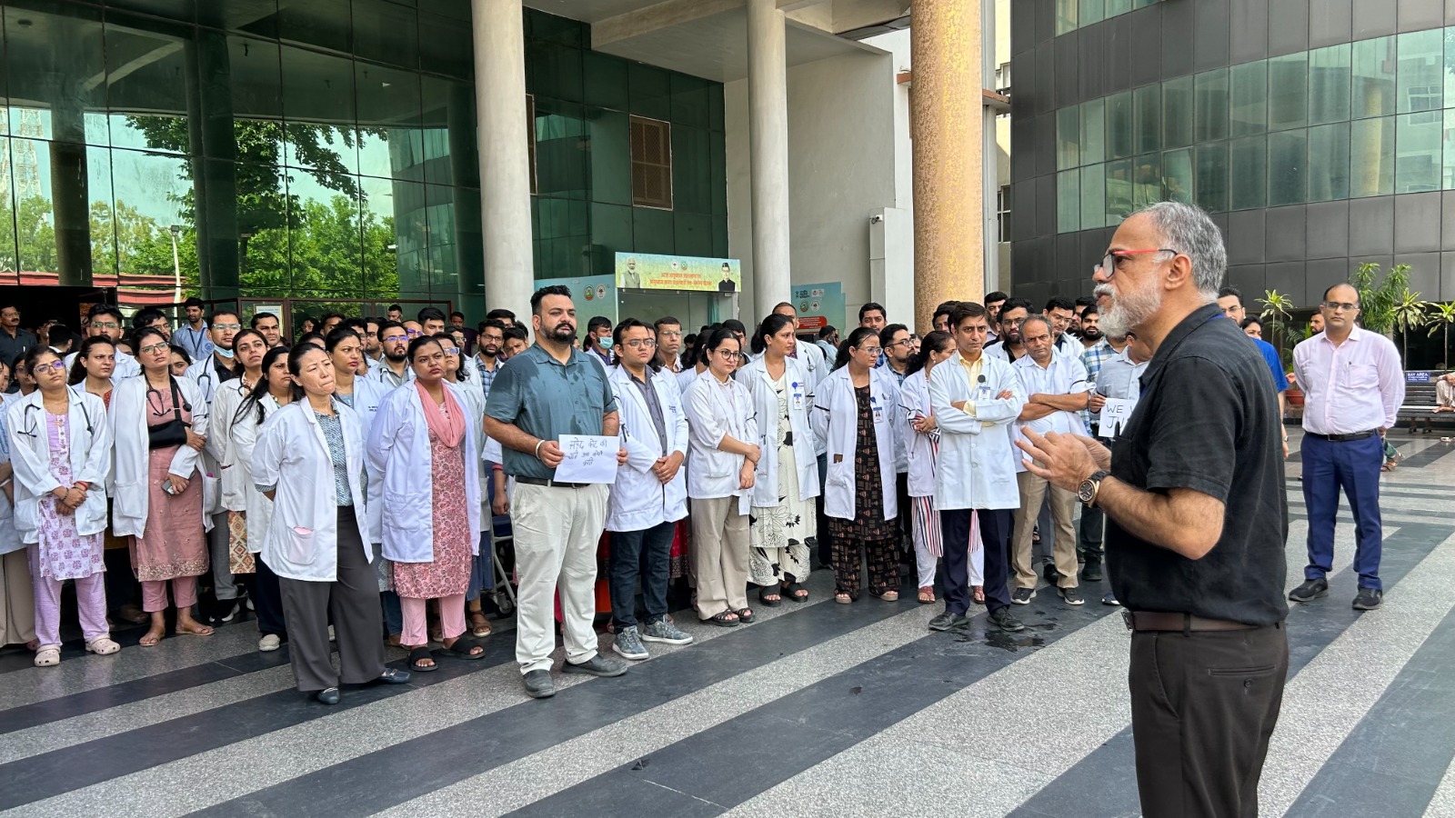 देहरादून। कोलकाता में महिला डाॅक्टर के साथ हुए दुष्कर्म और जघन्य हत्या के विरोध में श्री महंत इन्दिरेश अस्पताल के डाॅक्टरों ने विरोध जताया। उन्होंने शनिवार को विरोध स्वरूप काली पट्टी बांधकर प्रदर्शन किया। प्रदर्शन में शामिल डाॅक्टरों ने एक सुर में कहा कि कोलकाता में हुआ घटनाक्रम एक हृदयविदारक घटना है। विरोध प्रर्दशन में शामिल डाॅक्टरों ने दोषियों के विरूद्ध कड़ी से कड़ी कानूनी कार्रवाई की मांग की। देर शाम डाॅक्टरों ने कैंडिल मार्च निकालकर दिवंगत आत्मा के प्रति गहरी संवेदनाएं व्यक्त कीं।