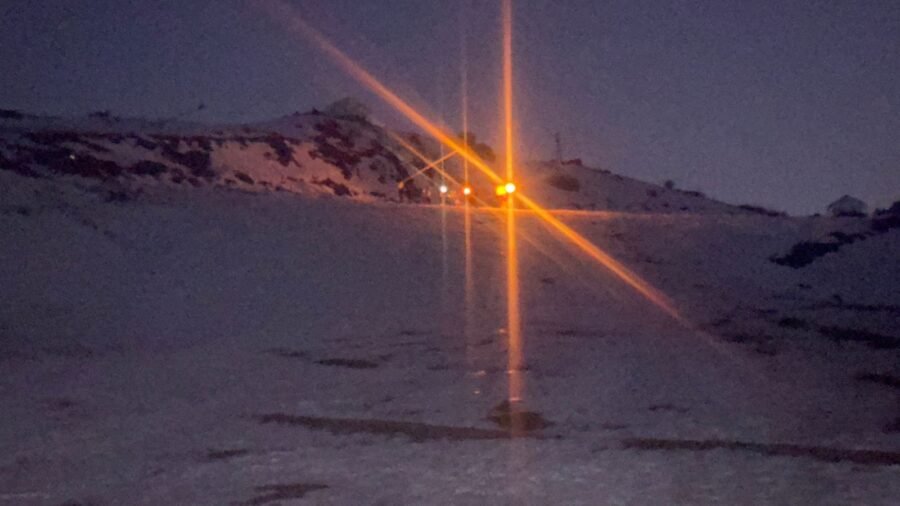 दूधिया रोशनी में चमकी बर्फ की ढलानें