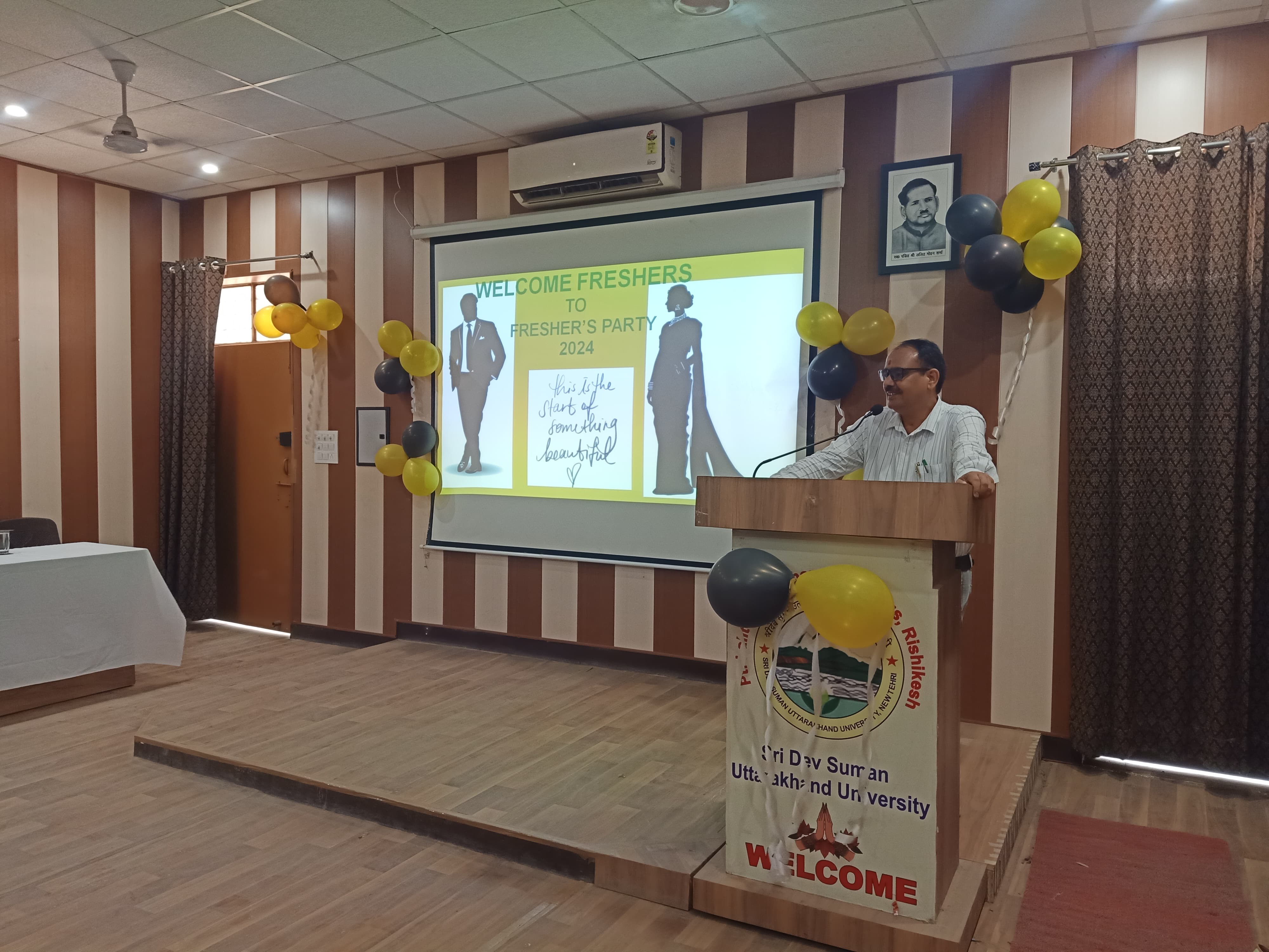 परिसर के निदेशक प्रो. एमएस रावत ने छात्र-छात्राओं को इस शानदार फ्रेशर पार्टी आयोजन के लिए छात्रों को शुभकामनाएं दी व कहा कि फ्रेशर पार्टी एक अद्भुत अवसर होता है जो नए छात्रों को अपने सीनियर्स और शिक्षकों से परिचित कराने में मदद करता है। यह पार्टी नए छात्रों को अपने नए अध्ययन स्थान में सहज महसूस कराने में महत्वपूर्ण भूमिका निभाती है व अंत में उन्होंने अपना आशीर्वाद छात्रों को दिया।
