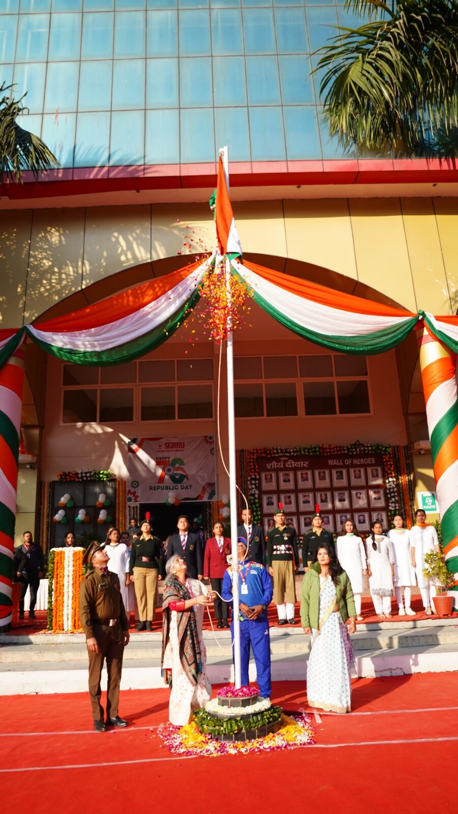 देहरादून। श्री गुरु राम राय विश्वविद्यालय (एसजीआरआरयू) सहित एसजीआरआर गुप के संस्थानों में गणतन्त्र दिवस समारोह धूमधाम के साथ मनाया गया। श्री दरबार साहिब श्री गुरु राम राय विश्वविद्यालय सहित एसजीआरआर के विभिन्न संस्थानों में गणतन्त्र दिवस पर मनमोहक कार्यक्रम आयोजित किए गए। श्री गुरु राम राय विश्वविद्यालय के एनएसएस, एनसीसी कैडेट्स, एनसीसी छात्र.छात्राओं सहित विश्वविद्यालय के 11 संघटक स्कूलों के छात्र.छात्राओं ने अनुशासित परेड से सबका मन मोह लिया।