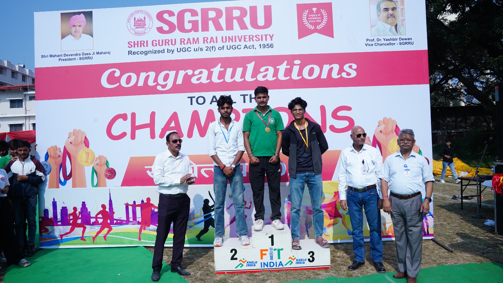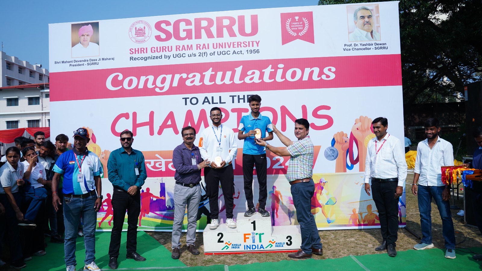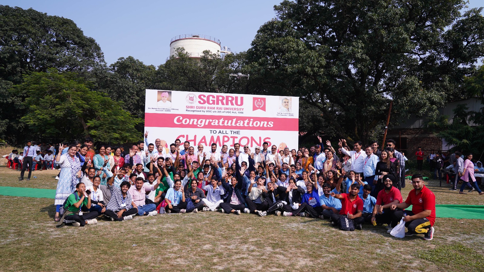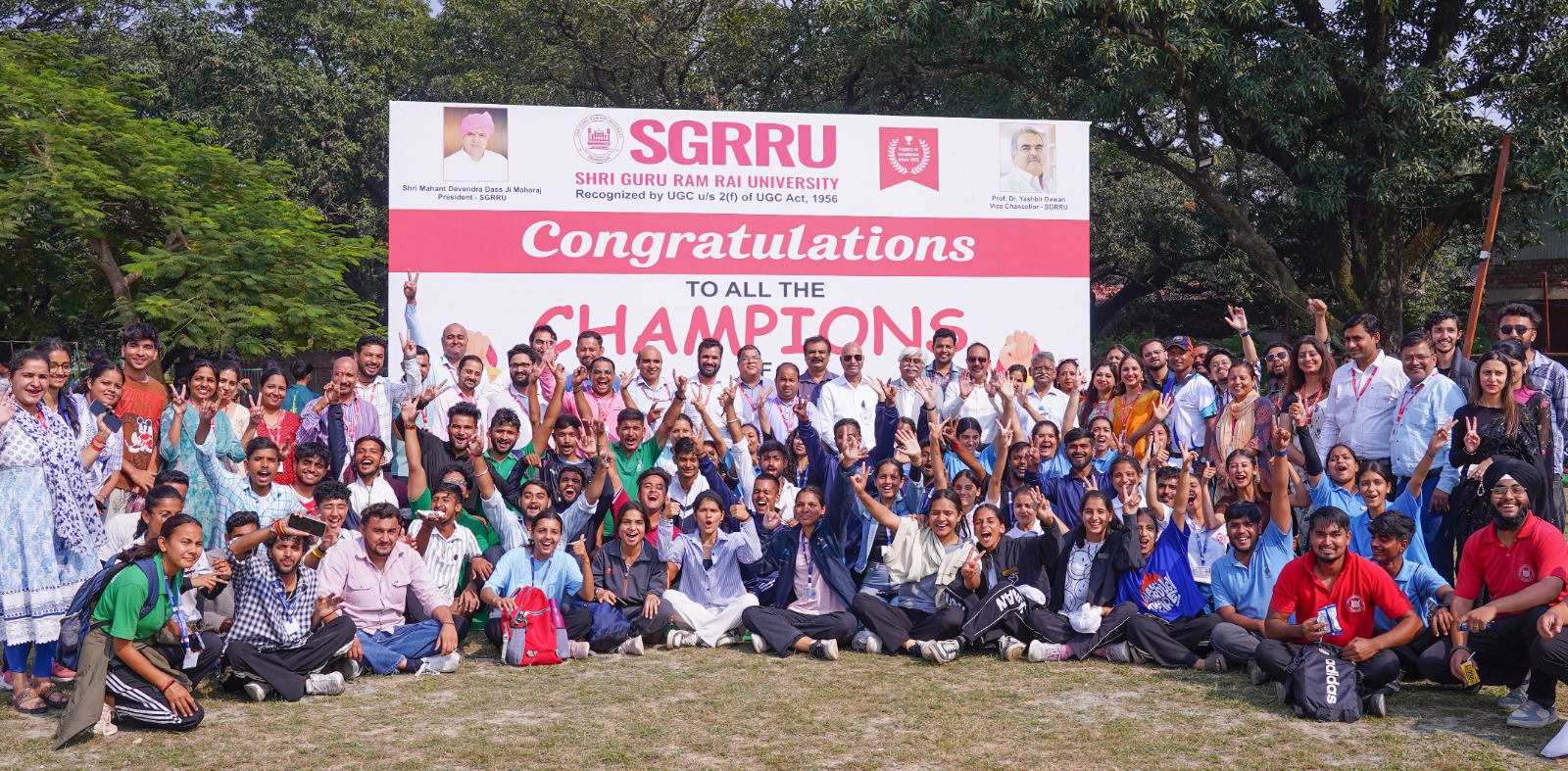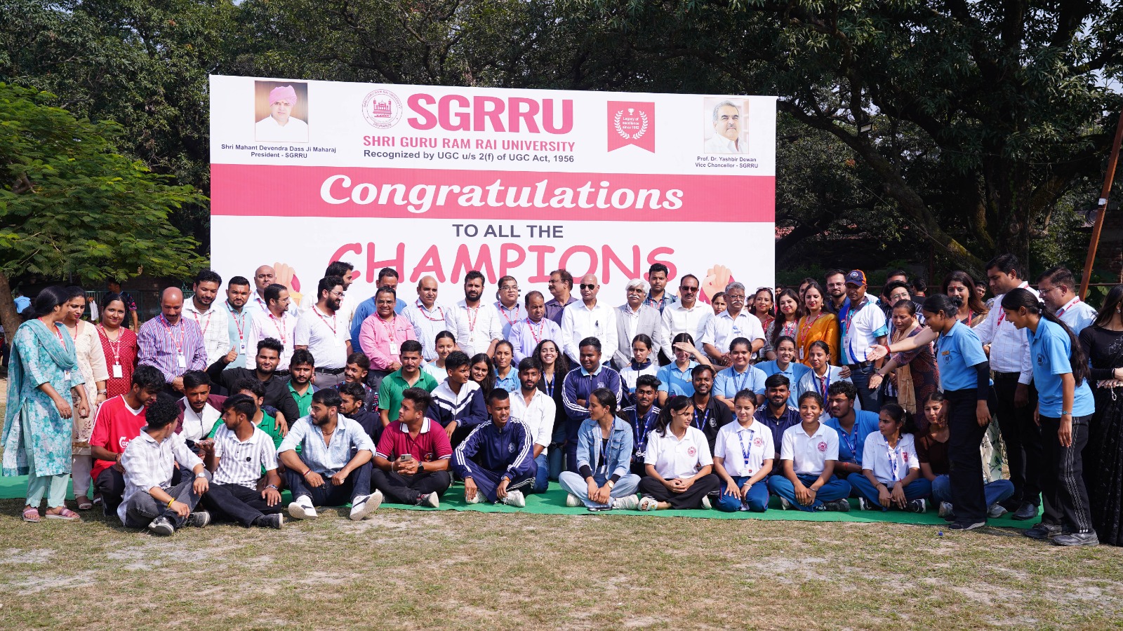 देहरादून। श्री गुरु राम राय विश्वविद्यालय (एसजीआरआरयू) की वार्षिक खेलकूद प्रतियोगिता खेलोत्सव का शनिवार को रंगारंग प्रस्तुतियों के साथ समापन हो गया। प्रतियोगिता के समापन अवसर पर छात्र-छात्राओं ने मनमोहक प्रस्तुतियां दीं। विश्वविद्यालय की ओर से विजेताओं को मैडल, पुरस्कार व प्रशस्ति पत्र देकर सम्मानित किया गया। श्री गुरु राम राय विश्वविद्यालय के प्रेसीडेंट श्रीमहंत देवेन्द्र दास जी महाराज ने सभी विजेताओं, छात्र-छात्राओं व खेलोत्सव के आयोजकों को सफल आयोजन के लिए बधाई व शुभकामनाएं दीं।