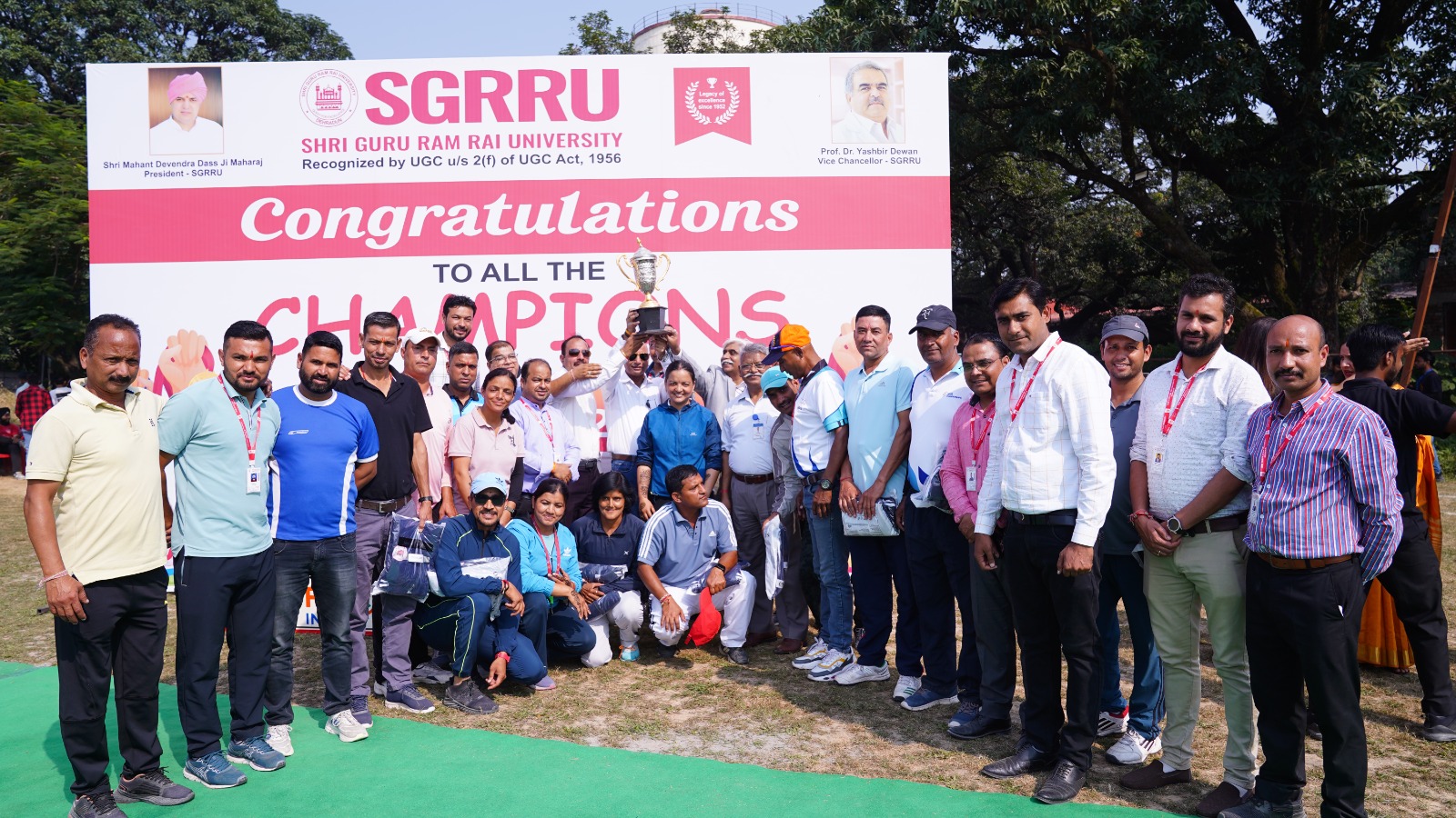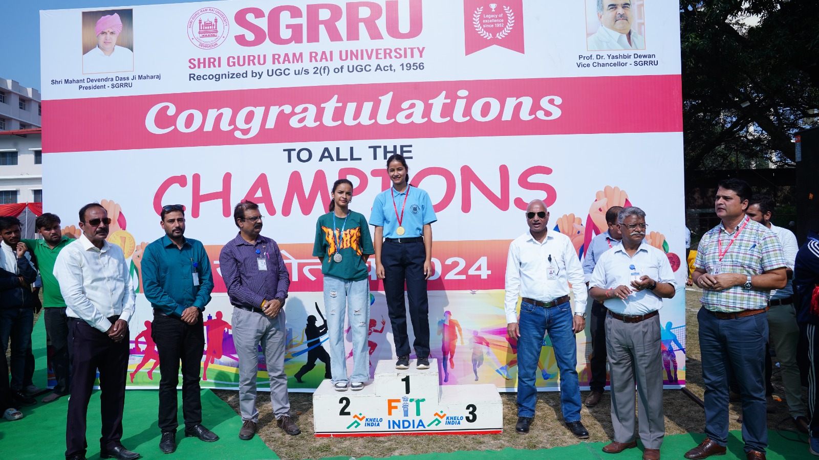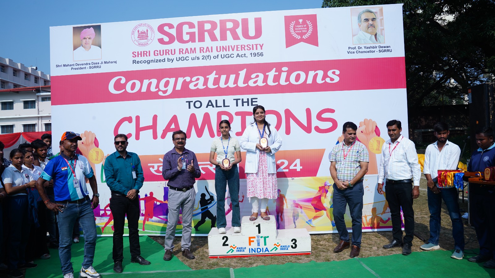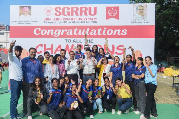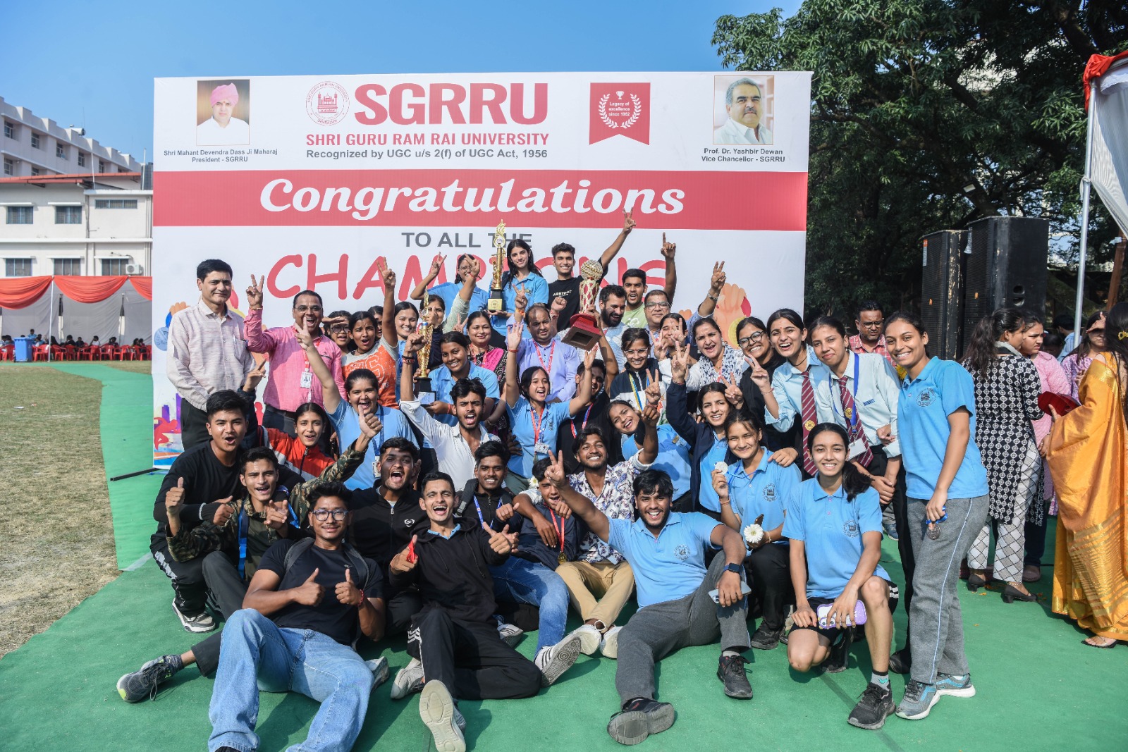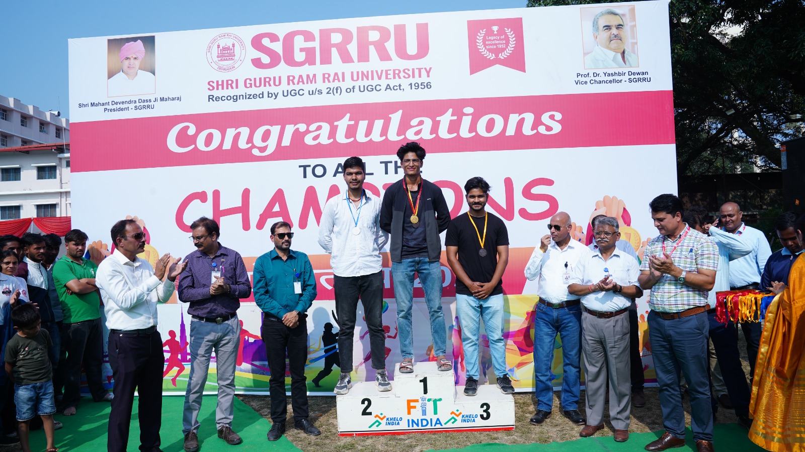 देहरादून। श्री गुरु राम राय विश्वविद्यालय (एसजीआरआरयू) की वार्षिक खेलकूद प्रतियोगिता खेलोत्सव का शनिवार को रंगारंग प्रस्तुतियों के साथ समापन हो गया। प्रतियोगिता के समापन अवसर पर छात्र-छात्राओं ने मनमोहक प्रस्तुतियां दीं। विश्वविद्यालय की ओर से विजेताओं को मैडल, पुरस्कार व प्रशस्ति पत्र देकर सम्मानित किया गया। श्री गुरु राम राय विश्वविद्यालय के प्रेसीडेंट श्रीमहंत देवेन्द्र दास जी महाराज ने सभी विजेताओं, छात्र-छात्राओं व खेलोत्सव के आयोजकों को सफल आयोजन के लिए बधाई व शुभकामनाएं दीं।