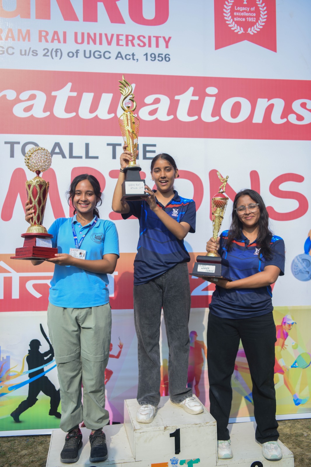 बालक वर्ग में 100 मीटर फर्राटा दौड मे स्कूल ऑफ इंजीनियरिंग एण्ड टैक्नोलाॅजी के छात्र अंशुल बिष्ट और बालिका वर्ग में ह्यूमैनिटीज की अदिति ने फाइनल जीता। बालक वर्ग 200 मीटर में फार्मेसी के अभिनव कुमार और ह्यूमैनिटीज़ की प्राची जमलोकी सिरमौर रहे। बालक वर्ग 400 मीटर में बेसिक एण्ड एप्लाइड साइंस के महेन्द्र सिंह और बालिका वर्ग में मैनेजमेंट की खुशी ने प्रथम स्थान प्राप्त किया। बालक वर्ग 800 मीटर में नीरज कुमार और बालिका वर्ग में पूर्णंमा अव्वल रहे। बालक वर्ग रिले रेस में आर्यन, उत्कर्ष, आयुष, रितिक ने खिताबी दौड़ जीती बालिका वर्ग में योगिता, सिमरन, पूजा, दिपिका एवं खुशी की जोड़ी अव्वल रही। रस्साकशी बालक वर्ग में स्कूल ऑफ फार्मेसी एवं बालिका वर्ग में स्कूल ऑफ ह्यूमैनिटीज ने खिताबी जीत दर्ज की।