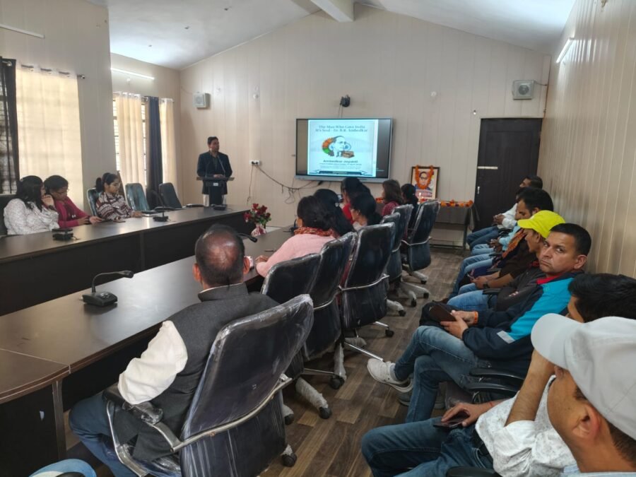 जयहरीखाल : भक्त दर्शन राजकीय स्नातकोत्तर महाविद्यालय, जयहरीखाल आज 13 अप्रैल 2023 को डॉ. भीमराव अम्बेडकर की 135वीं जयंती के पावन अवसर पर एक विशेष संगोष्ठी एवं भावांजलि कार्यक्रम का आयोजन किया गया l कार्यक्रम का शुभारंभ महाविद्यालय की प्राचार्य प्रो डॉ एल आर राजवंशी द्वारा दीप प्रज्ज्वलित कर तथा बाबा साहेब के चित्र पर पुष्प अर्पित कर किया। प्राचार्य ने अपने संबोधन में कहा कि डॉ. अम्बेडकर न केवल भारतीय संविधान के निर्माता थे, बल्कि उन्होंने अपना पूरा जीवन समाज के उत्थान, समानता और मानवाधिकारों की लड़ाई में समर्पित कर दिया। उनके विचार आज भी हर युवा के लिए प्रेरणास्रोत हैं । संगोष्ठी में अन्य वक्ताओं के रूप में डॉ. कमल कुमार, डॉ. उमेश ध्यानी एवं डॉ. आर. के. सिंह ने अपने-अपने विचार रखे।