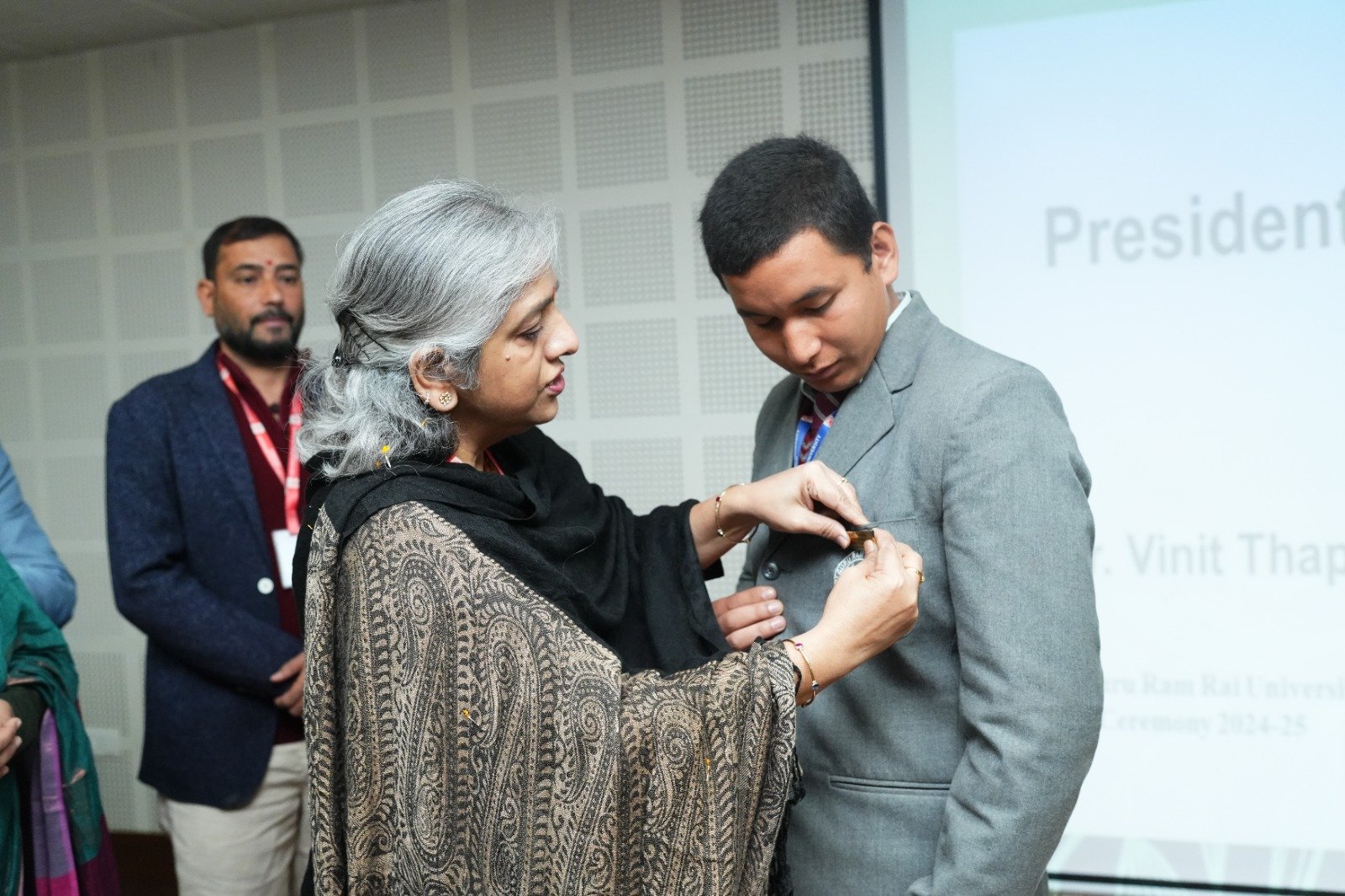 विश्वविद्यालय छात्र परिषद के अध्यक्ष विनीत थापा के साथ कुल 8 विभाग प्रतिनिधियों और 22 विश्वविद्यालय प्रतिनिधि छात्रों को बैज प्रदान किए गए। इस अवसर पर, डॉ गणराजन, प्रो (डॉ) प्रियंका बनकोटी, प्रो. (डॉ) प्रीति तिवारी, प्रो. (डॉ) दिव्या जुयाल, प्रो (डाॅ) कीर्ति सिंह, प्रो. (डॉ) अरुण कुमार, प्रो. (डा)ॅ रामालक्ष्मी, प्रो. (डॉ) कंचन जोशी के साथ ही सभी विभागाध्यक्ष मौजूद रहे।