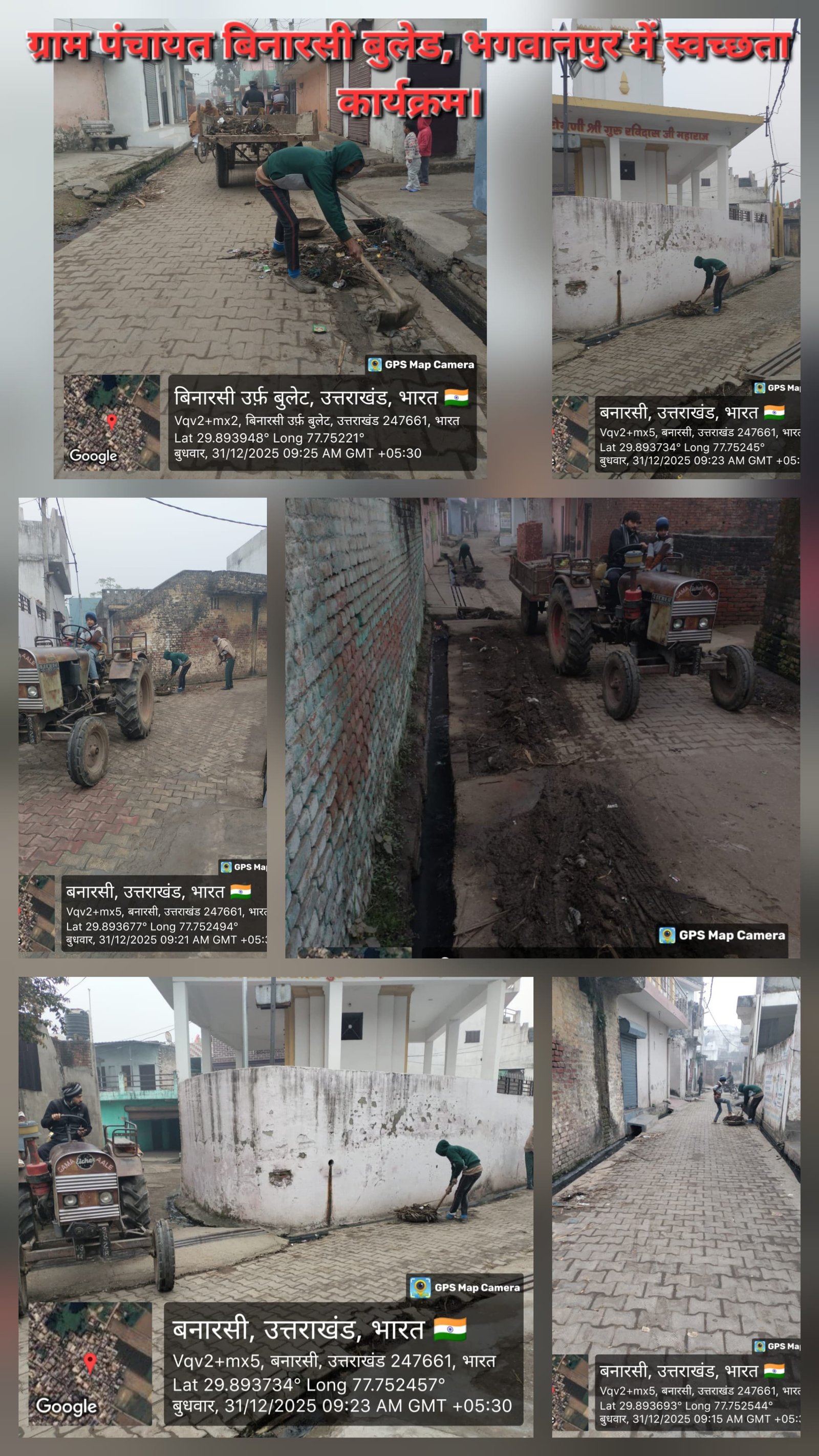 खंड विकास अधिकारी खानपुर ने अवगत कराया है कि खानपुर क्षेत्रांतर्गत तुहलाकपुर में साफ सफाई का कार्य कराया गया। खंड विकास अधिकारी भगवानपुर ने अवगत कराया है कि भगवानपुर क्षेत्रांतर्गत ग्राम पंचायत धीर माजरा, बीवी जी राम जी योजना के श्रमिकों द्वारा साफ सफाई का कार्य किया गया। खंड विकास अधिकारी नारसन ने अवगत कराया है कि नारसन क्षेत्रांतर्गत सिकंदरपुर मावल क्षेत्रों में नालियों की सफाई के साथ मार्गो पर साफ सफाई का कार्य कराया गया।