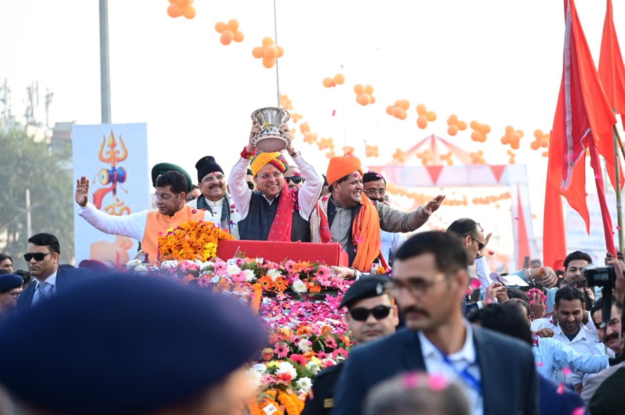 मुख्यमंत्री धामी ने त्रिशूल चौक का लोकार्पण किया उससे पूर्व उन्होंने कांवरियों की पैर पखारे एवं उनको अंगवस्त्र व पुष्प माला भेंट कर उनका अभिवादन किया, इसके उपरांत त्रिशूल चौक से सरस मेला कार्यक्रम स्थल गांधी पार्क तक आयोजित शिव बारात में प्रतिभाग किया। शिव बारात में माननीय मुख्यमंत्री का विभिन्न संगठनों व जनता द्वारा फूलमाला, पुष्पवर्षा कर भव्य स्वागत किया।