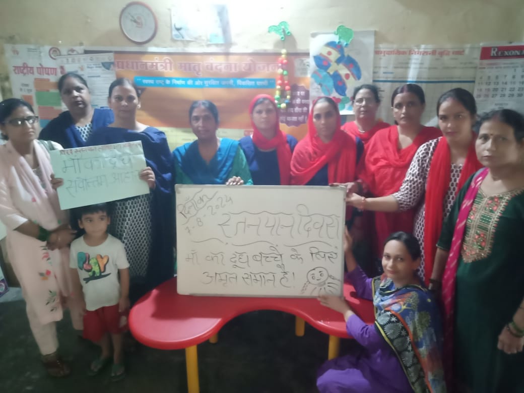 हरिद्वार : विश्व स्तनपान सप्ताह के अंतर्गत जनपद हरिद्वार के विभिन्न आंगनवाड़ी केद्रों पर किशोरियों और महिलाओं के द्वारा स्तनपान विषय पर आयोजित पेंटिंग और मेहंदी प्रतियोगिता में हिस्सा लिया गया तथा प्रतियोगिता में महिलाओं और बालिकाओं ने इस सप्ताह में पड़ने वाले त्योहारों को भी इसमें शामिल करते हुए महंदी लगाई। बच्चों को स्तनपान कराने के सही तरीके और फायदे की जानकारी दी जिससे बच्चो का सही विकास हो व बच्चे स्वस्थ्य रहे।